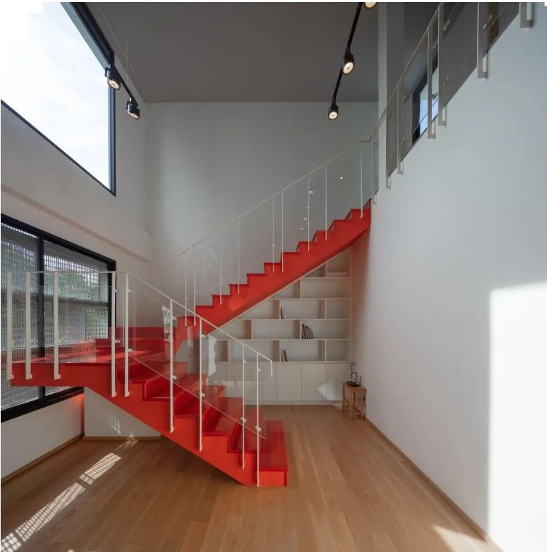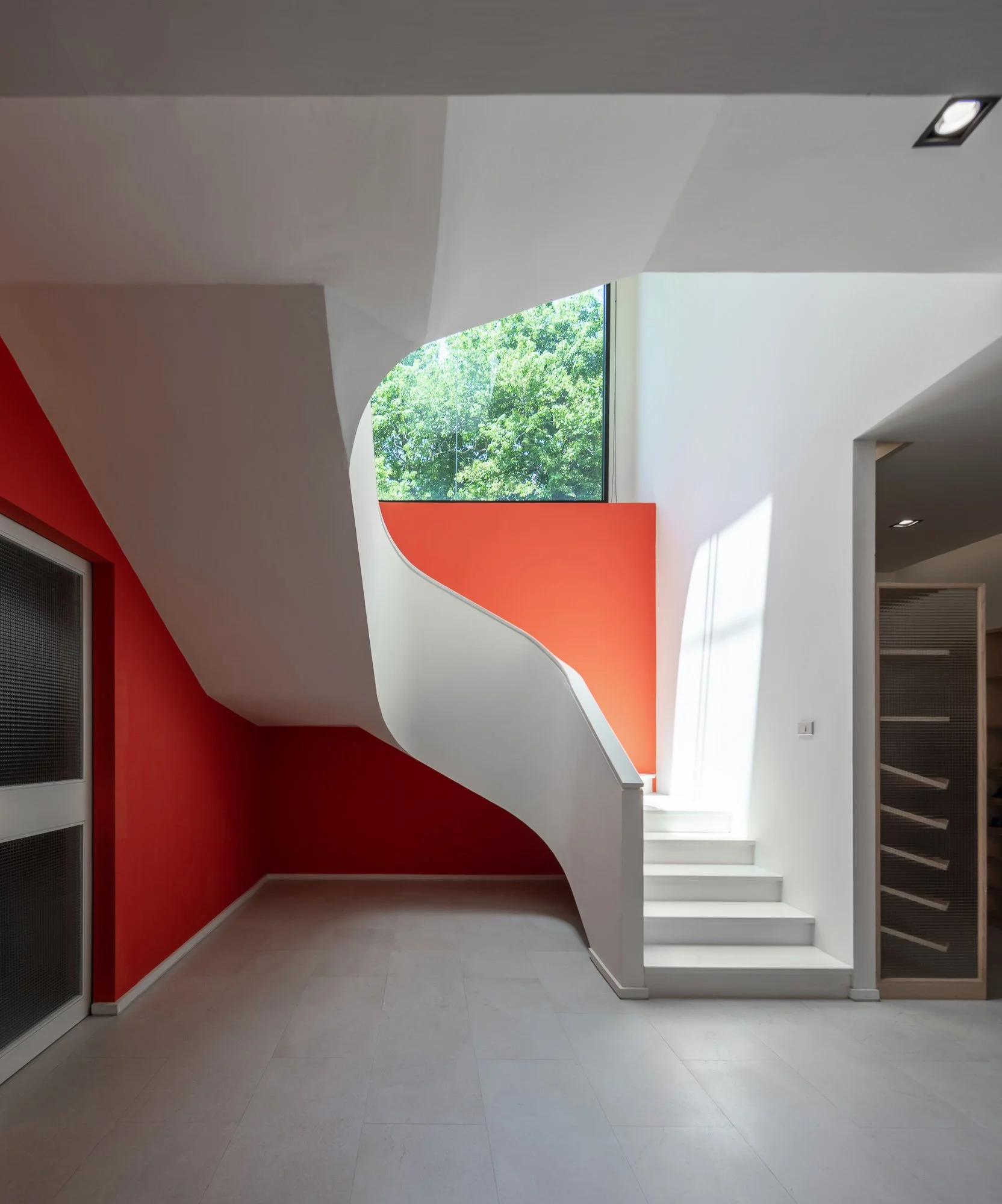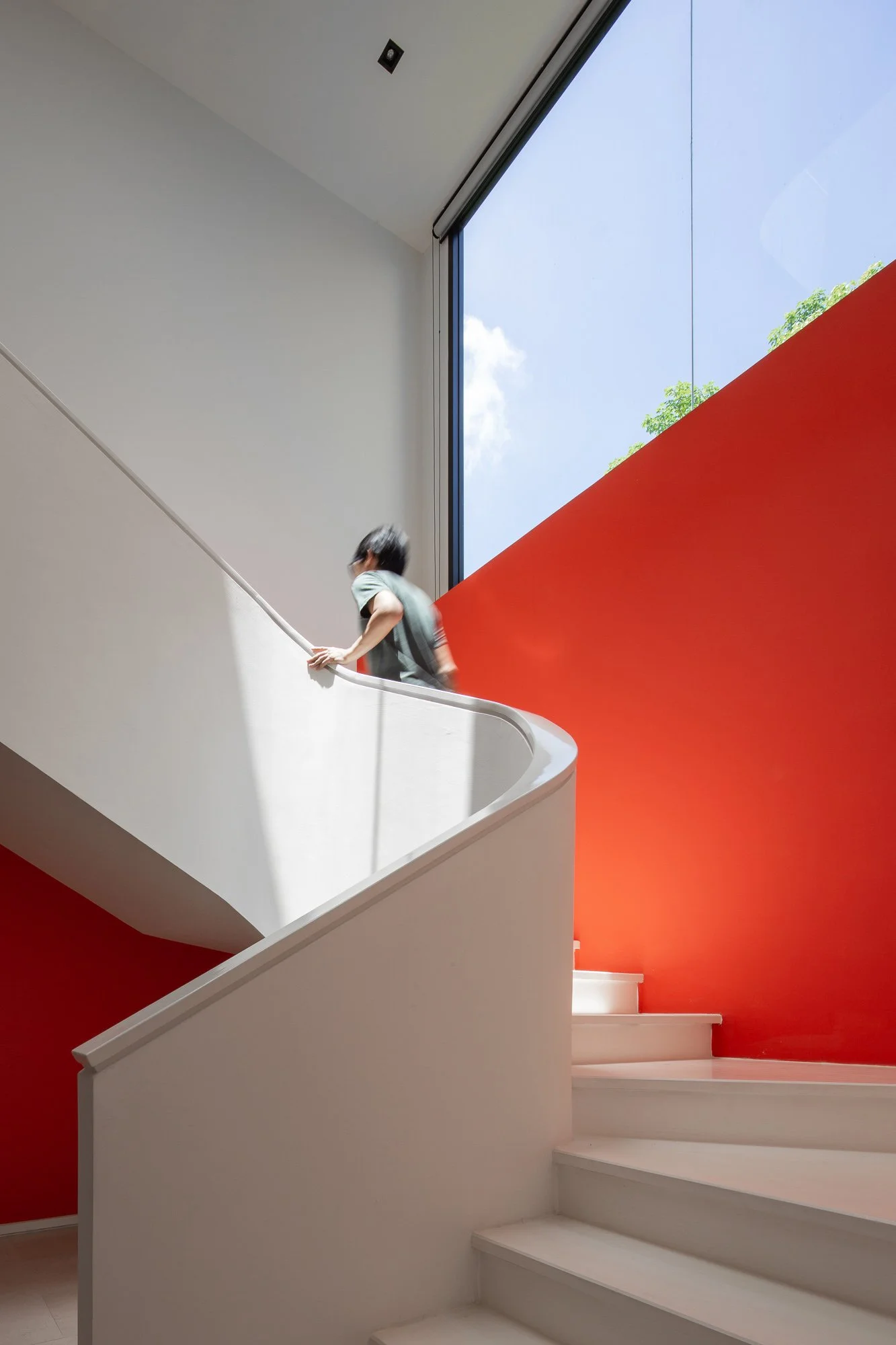 Red wall staircase : Staircase with red walls at LAD-15 House.